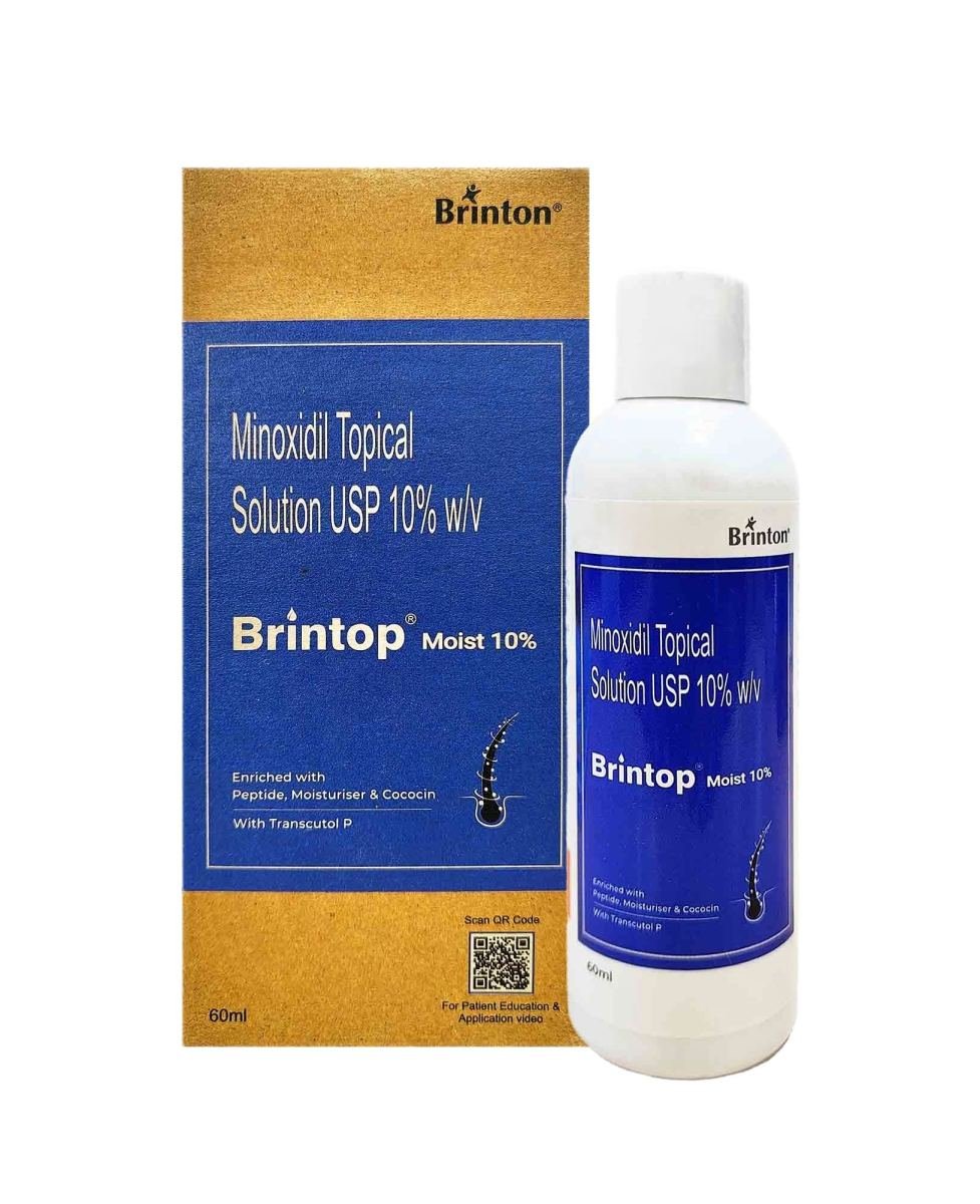 - Brintop Moist 10% Solution belongs to a class of drugs known as vasodilators. It is used to promote hair growth in men with male pattern baldness by improving blood flow to hair follicles, helping slow hair loss, and encouraging new hair growth when used regularly.