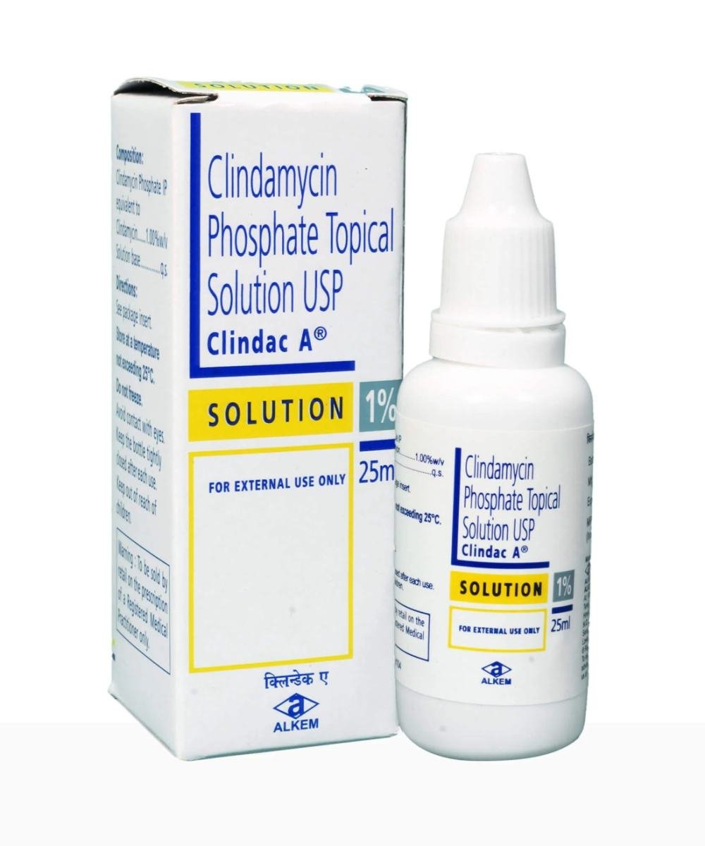 Product Description- Clindac A Solution is a topical antibiotic commonly prescribed for the treatment of acne, particularly when breakouts occur on the face, chest, or back. It works by reducing the number of acne-causing bacteria on the skin, thereby minimizing inflammation and preventing the formation of new pimples.