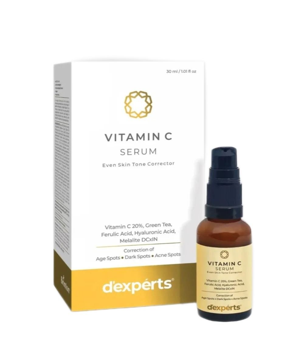 - Dexperts Vitamin C serum is packed with pure Vitamin C, known for its numerous benefits for the skin. This serum contains pure and concentrated Vitamin C, which is essential for maintaining healthy skin. It helps brighten a dull complexion and evens out skin tone, giving you a radiant glow.
