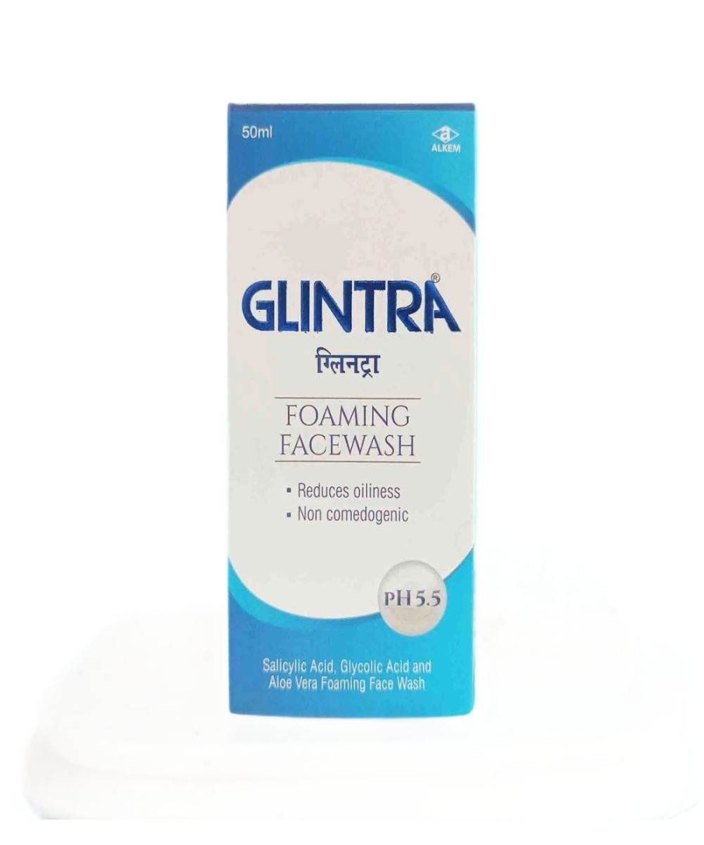 - Glintra Face Wash 50ml is designed to cleanse the skin without overdrying it. It effectively removes dirt, oil, and impurities, leaving the skin fresh. The formulation is gentle enough for daily use, offering a non-stripping cleanse. It helps remove makeup and environmental pollutants from the skin.