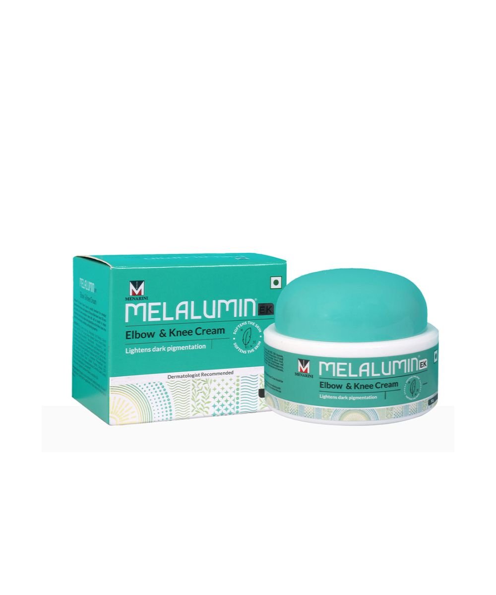 - Melalumin Elbow & Knee Cream multi-action formula is designed using patented skin penetration enhancer technology that increases the absorption of phytonutrients in the skin and enhances its effectiveness. The skin lightening property lightens dark areas, its exfoliating power removes the dead skin build-up, and moisturization softens the skin.