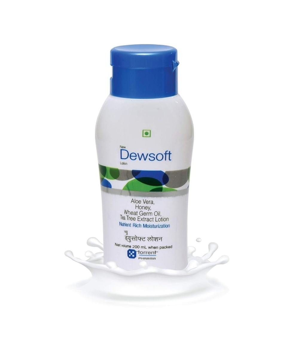 Product Description- New Dewsoft Lotion is formulated with nourishing and moisturising ingredients like aloe vera, honey, wheat germ oil, and tea tree, which helps reduce skin dryness and irritation. The lotion has calming and soothing properties, which minimise itchiness and flakyness. It keeps the skin soft, supple, and healthy.