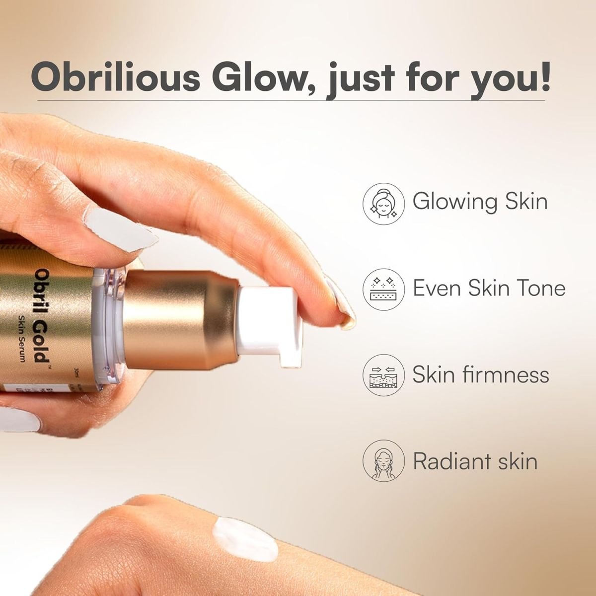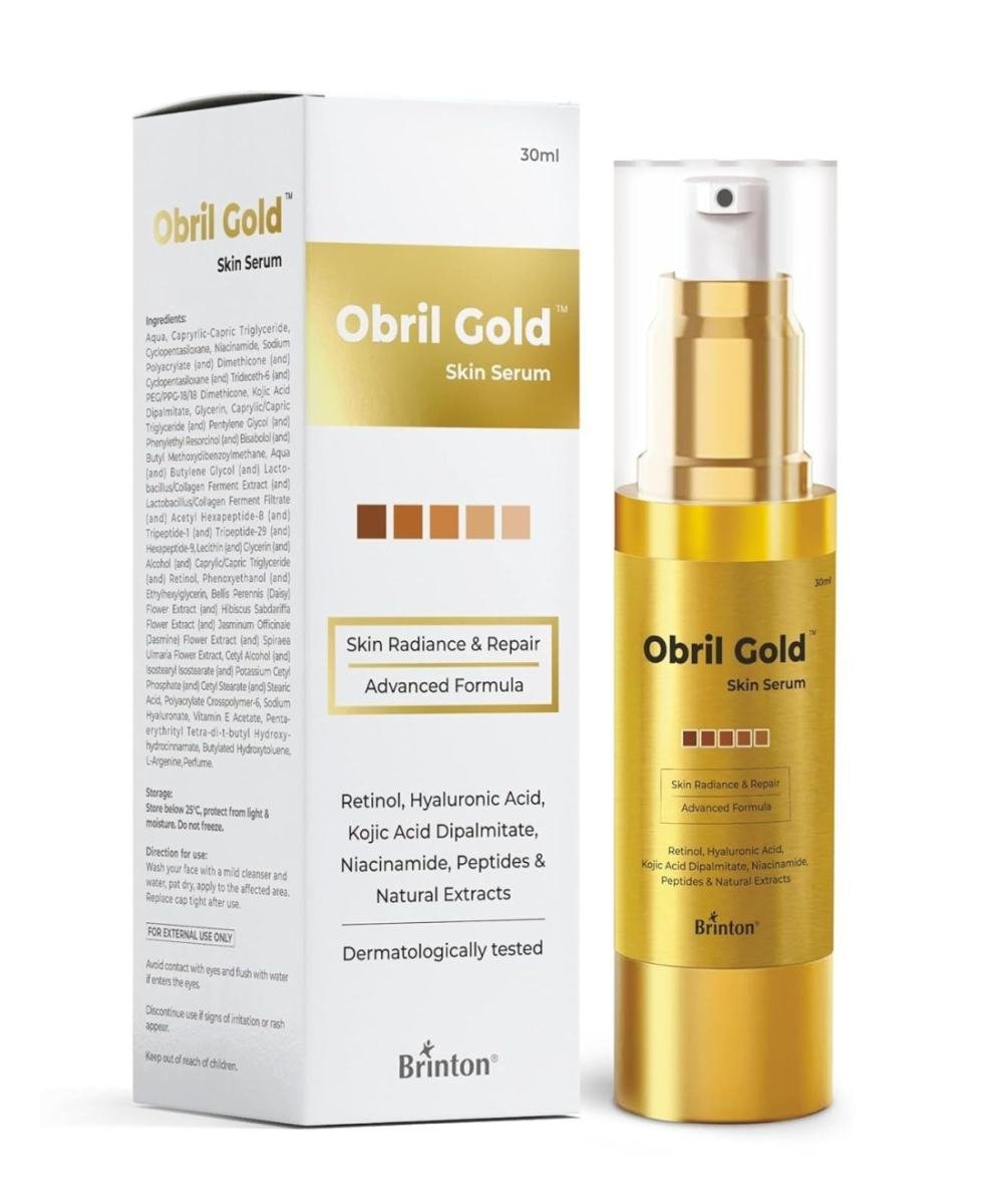 Product Description- Obril Gold Skin Serum is a skin-radiating and repairing formula. This serum is formulated with the benefits of retinol, hyaluronic acid, kojic acid, niacinamide, and many other vital ingredients. It helps to offer firmness and skin whitening and hence combats fine wrinkles and provides radiance to the skin.