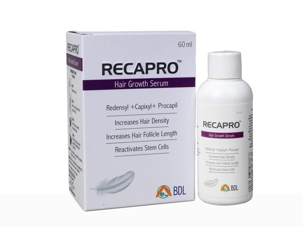 - Recapro Hair Growth Serum harnesses the power of Redensyl, Capixyl, and Procapil to deliver a potent solution for those looking to enhance hair follicle length and increase hair density. This innovative serum reactivates stem cells, promoting healthier, fuller hair growth. Specially formulated for thinning hair, it provides the essential nutrients needed to rejuvenate hair follicles and boost overall scalp health.