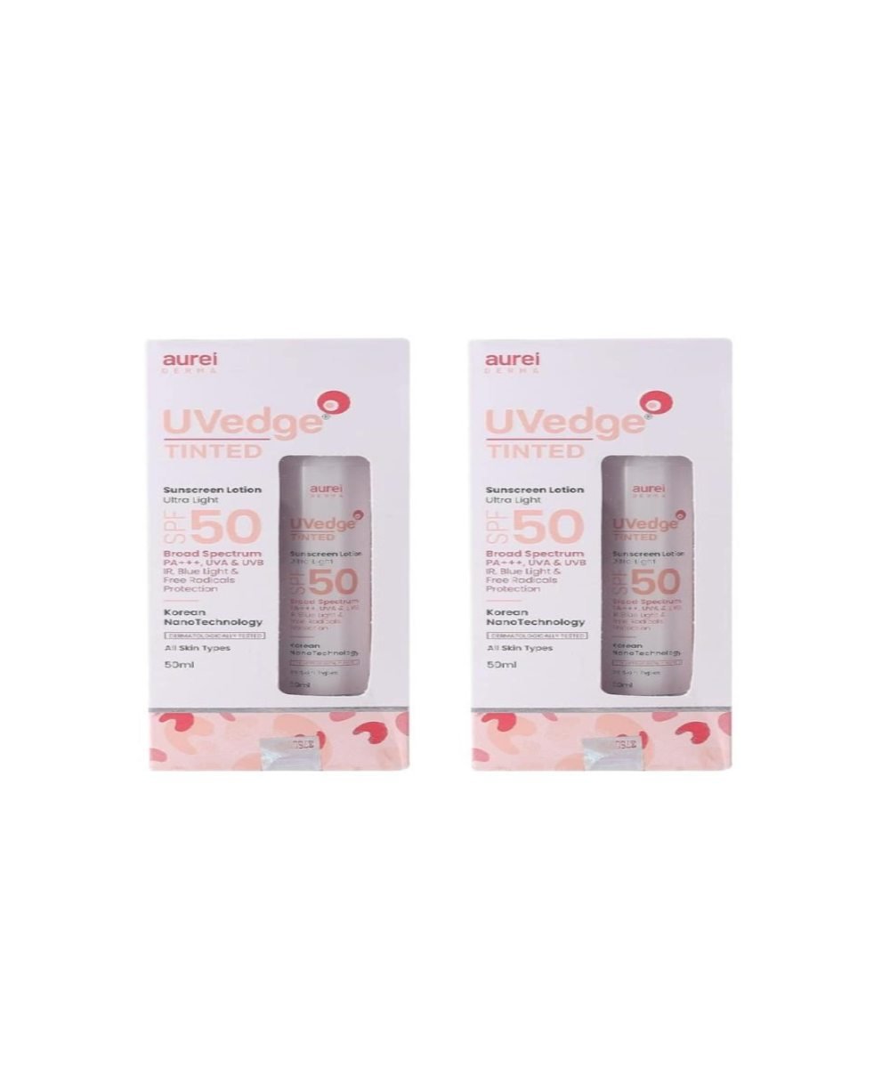 - UVedge Tinted SPF-50 Sunscreen Lotion with PA+++, UVA & UVB, IR, Blue Light and Free Radicals Protection.